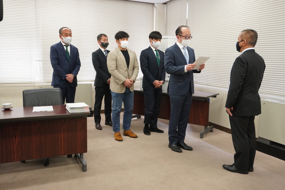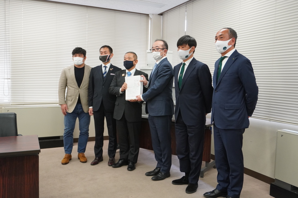 本日2月12日(金)に、相模原市ホームタウン4チーム(三菱重工相模原ダイナボアーズ、ノジマ相模原ライズ、SC相模原、ノジマステラ神奈川相模原)は、本村賢太郎相模原市長を訪問し、104,201筆の署名とともに、相模総合補給廠一部返還地を活用した多機能複合型スタジアム整備の要望書を提出致しましたので、ご報告申し上げます。