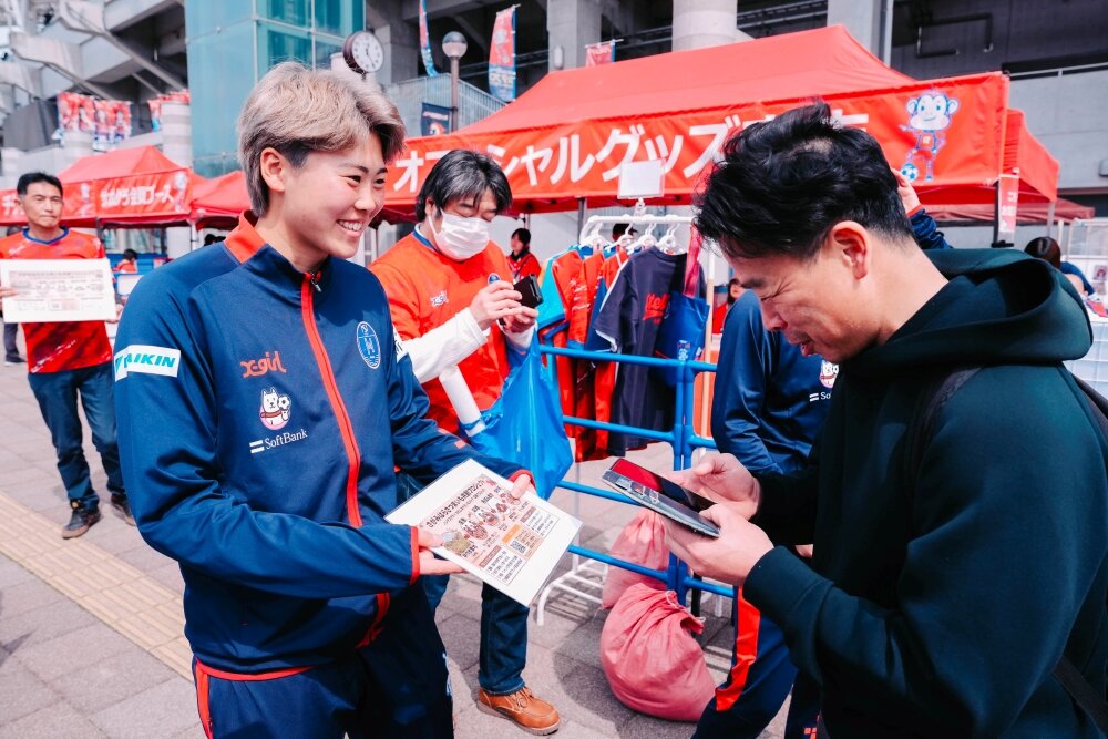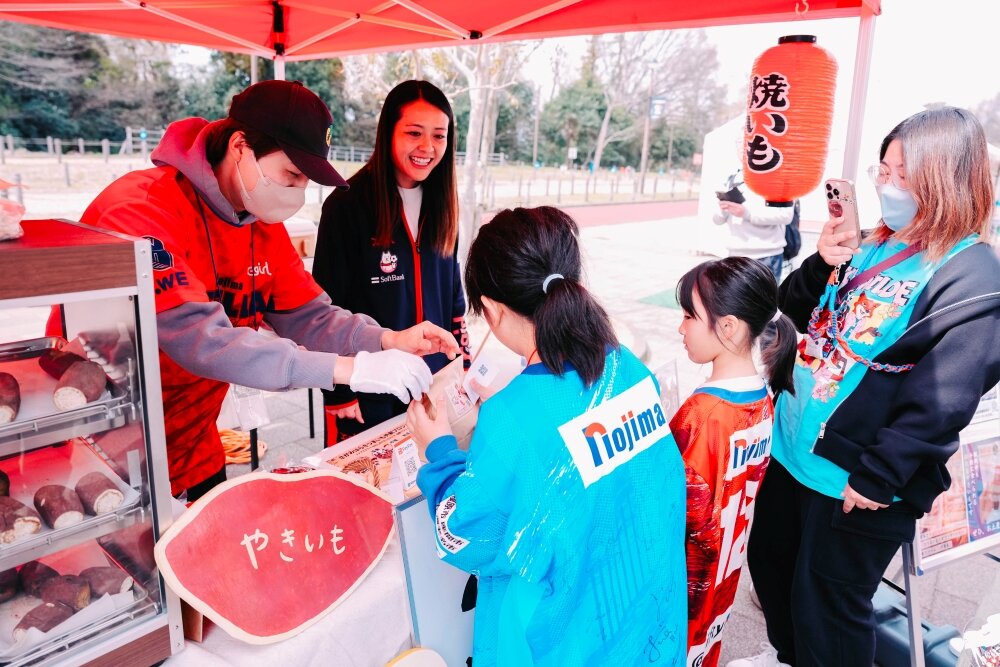 3月22日(日)に開催した WEリーグクラシエカップ第6節のホームゲーム会場にて「ノジマステラ産やきいも」の販売を、かわしまやきいもストアさま、岩崎有波選手、平田ひかり選手、木竜有姫選手、そして4名のサポーターにもご協力いただき、実施しました。 収穫した中から、傷のない綺麗なものだけを厳選したさつまいもを、貯蔵・加工し、販売を楽しみにしてくださっていた皆さまのもとへとお届け。用意していた60本は両チームサポーターの皆さまにお買い上げいただき、早期完売となりました。みんなの思いが詰まり、大切に育ててきたやきいもへの『あまくて、おいしかった』の感想やアンケートへのご協力ありがとうございました!