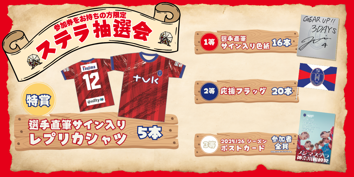 ※ハーフタイム時に会場内で抽選結果を発表いたします。