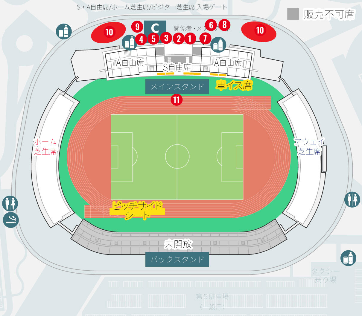 ※メインスタンドA自由席・ホームゴール裏芝生席のいずれか。