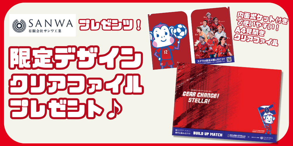来場者プレゼントとして、マッチデーパートナーの有限会社サンワ工業さまとのコラボクリアファイルなどを来場者全員にプレゼント!