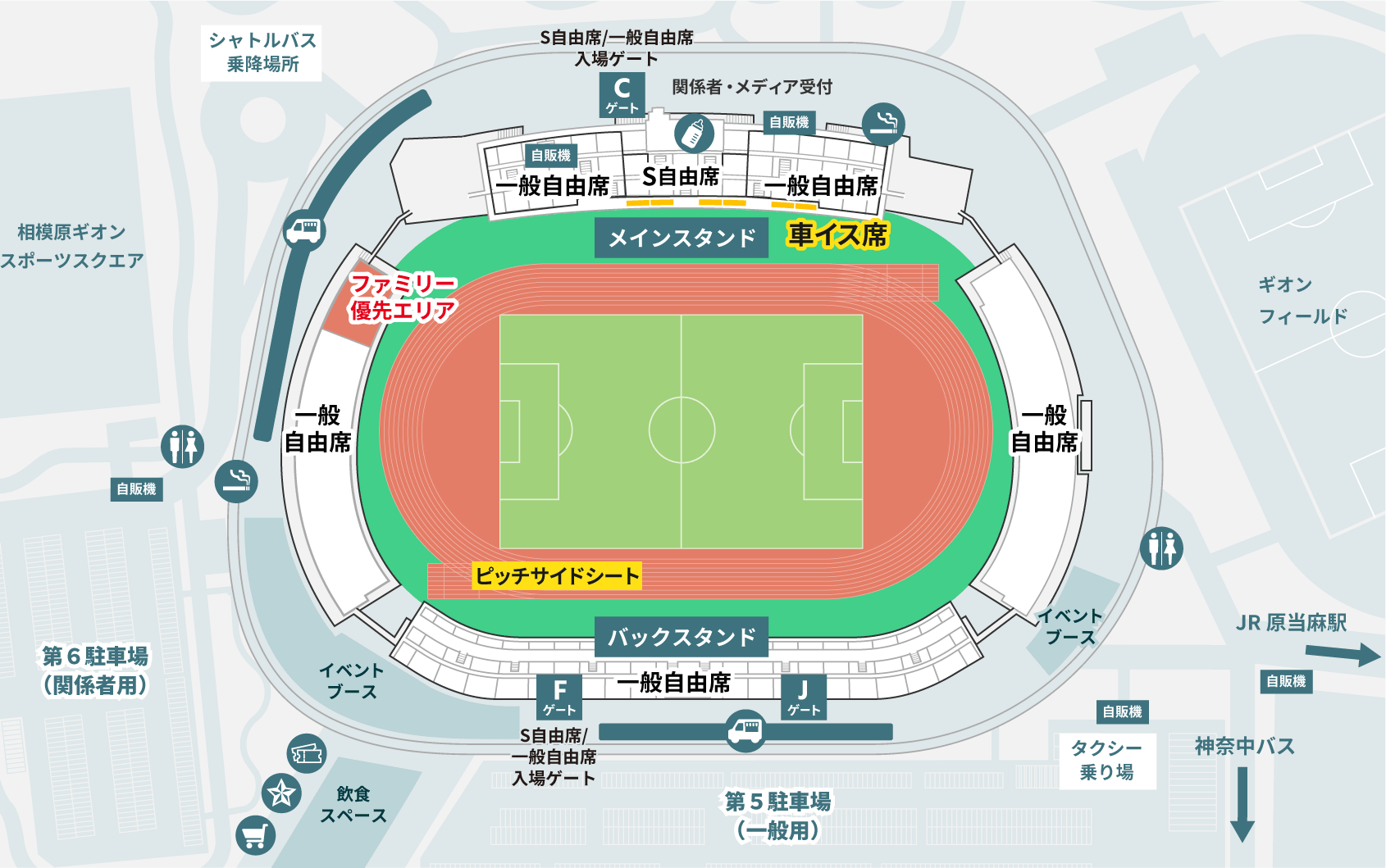 - ※「ピッチサイドシート」の方は、キックオフ60分前に関係者受付前に集合してください。