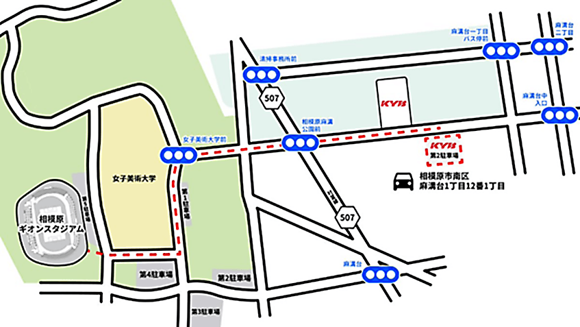 - 【駐車場所】KYB相模工場 第2駐車場(相模原市南区麻溝台1-12-1)